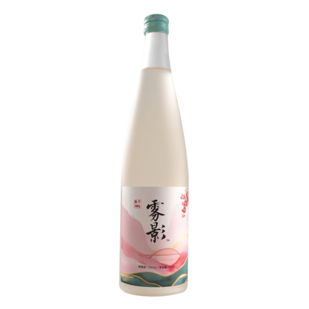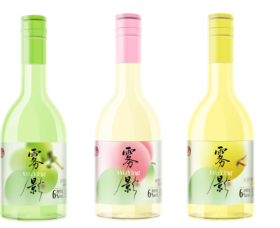 瓶标:雾影间的方寸意境——瓶标聚焦“雾影”二字,以淡墨晕染勾勒山雾。排布简约通透,使酒液色彩映透其间,宛如将巫山之雾与鲜果一并凝于方寸。
